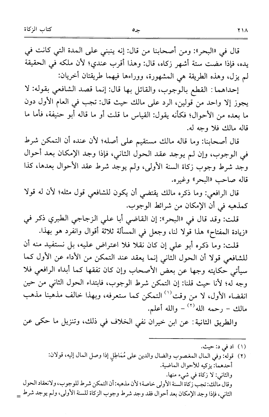 قلت: وما ذكره أبو علي إن كان نقلاً فلا اعتراض عليه، بل نستفيد منه أن للشافعي قولاً أن الحول الثاني إنما يعقد عند التمكن من الأداء عن الأول كما سيأتي حكايته وجهاً عن بعض الأصحاب وإن كان تفقهاً كما أبداه الرافعي فلا وجه له؛ لأنا حيث قلنا: إن التمكن شرط الوجوب، فابتداء الحول الثاني من حين انقضاء الأول، لا من وقت التمكن كما ستعرفه، وبهذا خالف مذهبنا مذهب مالك- رحمه الله- والله أعلم.