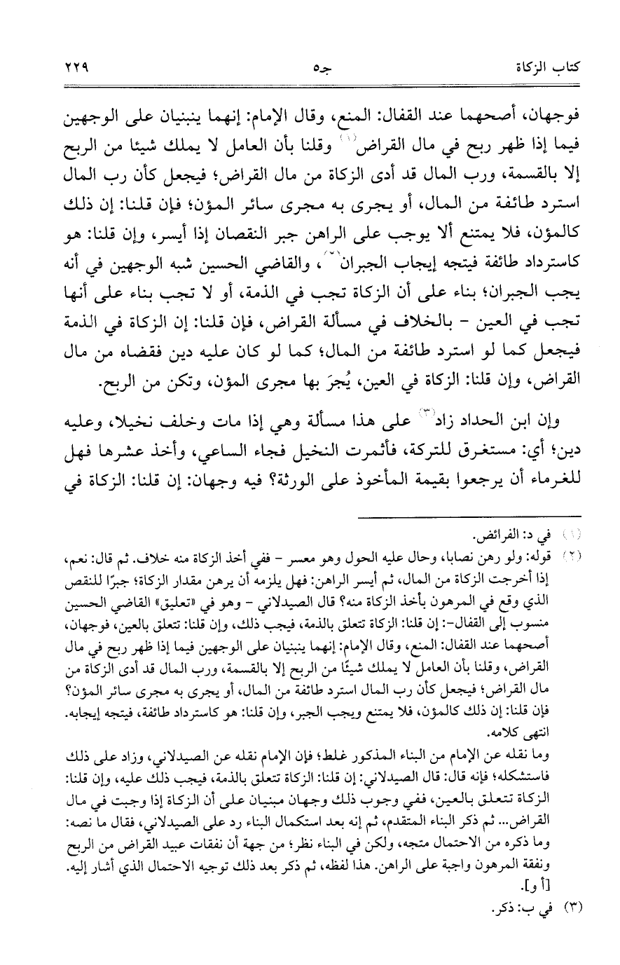 وإن ابن الحداد زاد على هذا مسألة وهي إذا مات وخلف نخيلا، وعليه دين؛ أي: مستغرق للتركة، فأثمرت النخيل فجاء الساعي، وأخذ عشرها فهل للغرماء أن يرجعوا بقيمة المأخوذ على الورثة؟ فيه وجهان: إن قلنا: الزكاة في