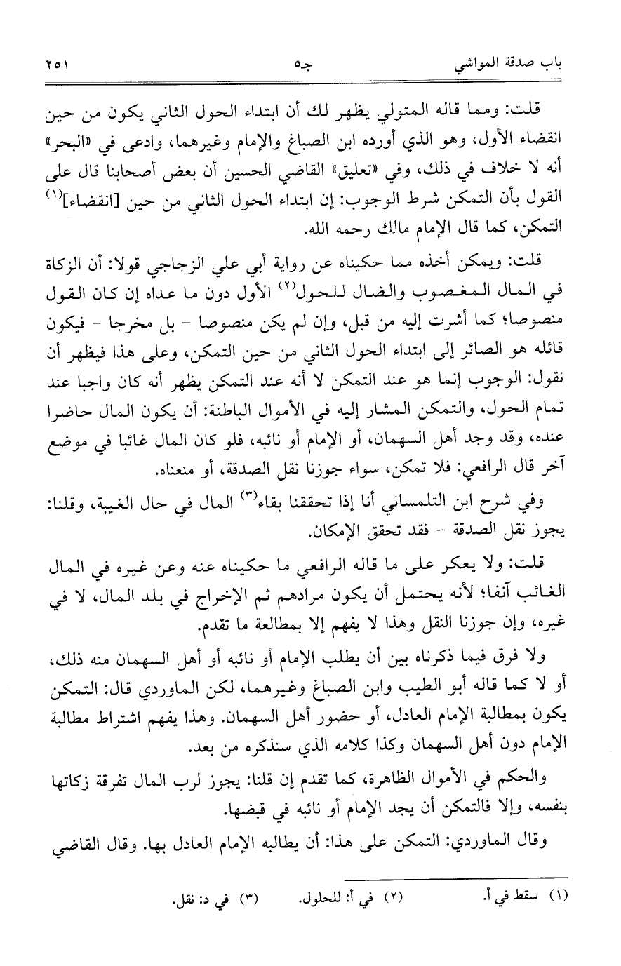 وفي شرح ابن التلمساني أنا إذا تحققنا بقاء المال في حال الغيبة، وقلنا: يجوز نقل الصدقة- فقد تحقق الإمكان.
