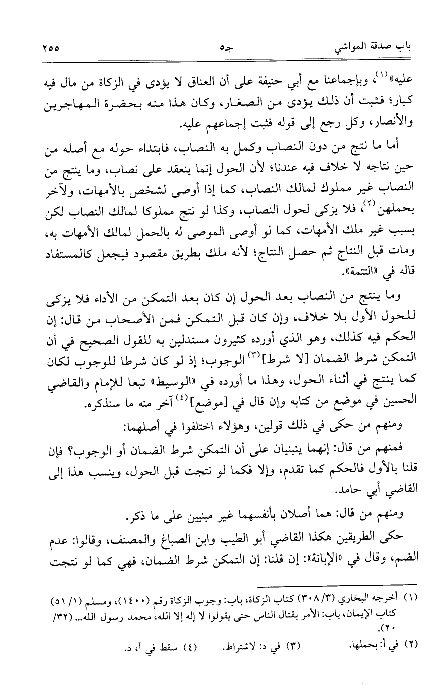 أما ما نتج من دون النصاب وكمل به النصاب، فابتداء حوله مع أصله من حين نتاجه لا خلاف فيه عندنا؛ لأن الحول إنما ينعقد على نصاب، وما ينتج من النصاب غير مملوك لمالك النصاب، كما إذا أوصى لشخص بالأمهات، ولآخر بحملهن، فلا يزكى لحول النصاب، وكذا لو نتج مملوكاً لمالك النصاب لكن بسبب غير ملك الأمهات، كما لو أوصى الموصى له بالحمل لمالك الأمهات به، ومات قبل النتاج ثم حصل النتاج؛ لأنه ملك بطريق مقصود فيجعل كالمستفاد قاله في "التتمة".