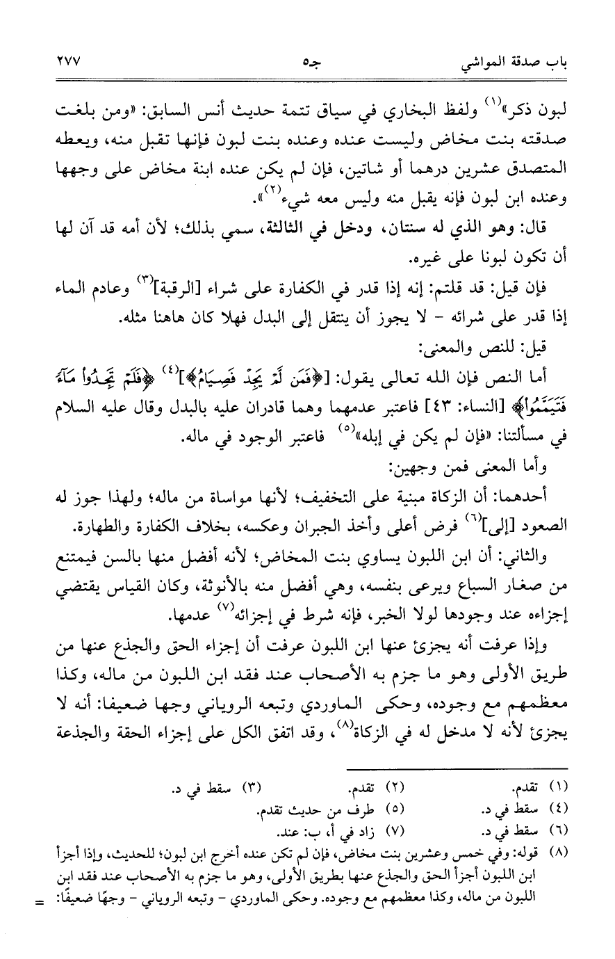 لبون ذكر" ولفظ البخاري في سياق تتمة حديث أنس السابق: "ومن بلغت صدقته بنت مخاض وليست عنده وعنده بنت لبون فإنها تقبل منه، ويعطه المتصدق عشرين درهماً أو شاتين، فإن لم يكن عنده ابنة مخاض على وجهها وعنده ابن لبون فإنه يقبل منه وليس معه شيء".
