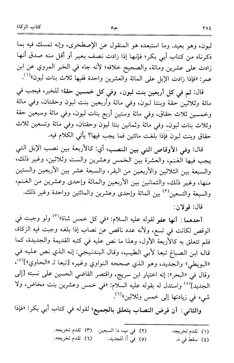 لبون، وهو بعيد. وما استبعده هو المنقول عن الإصطخري، وأنه تمسك فيه بما ذكرناه من كتاب أبي بكر؛ فإنها إذا زادت نصف بعير أو أقل منه صدق أنها زادت على عشرين ومائة، والصحيح خلافه؛ لأنه جاء في الخبر المروي عن ابن عمر: "فإذا زادت الإبل على المائة والعشرين واحدة ففيها ثلاث بنات لبون".