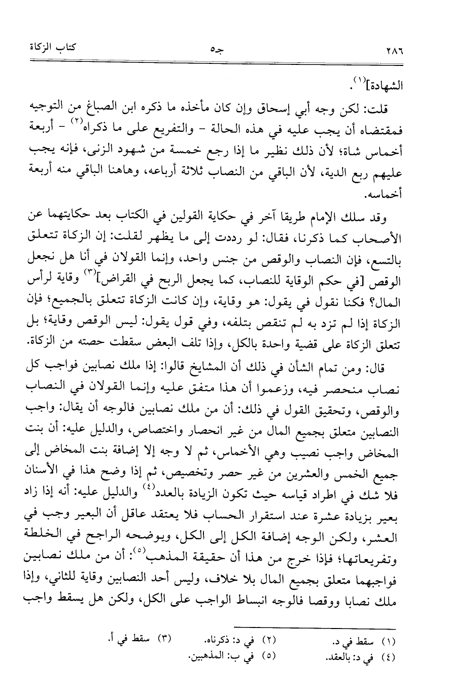 قلت: لكن وجه أبي إسحاق وإن كان مأخذه ما ذكره ابن الصباغ من التوجيه فمقتضاه أن يجب عليه في هذه الحالة- والتفريع على ما ذكراه- أربعة أخماس شاة؛ لأن ذلك نظير ما إذا رجع خمسة من شهود الزنى، فإنه يجب عليهم ربع الدية، لأن الباقي من النصاب ثلاثة أرباعه، وهاهنا الباقي منه أربعة أخماسه.