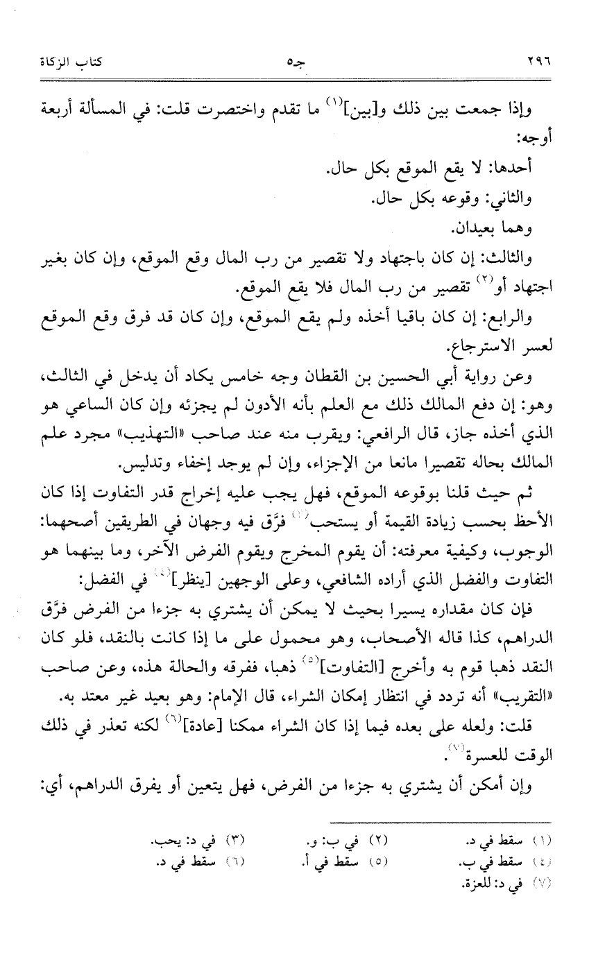 وإذا جمعت بين ذلك و [بين] ما تقدم واختصرت قلت: في المسألة أربعة أوجه: