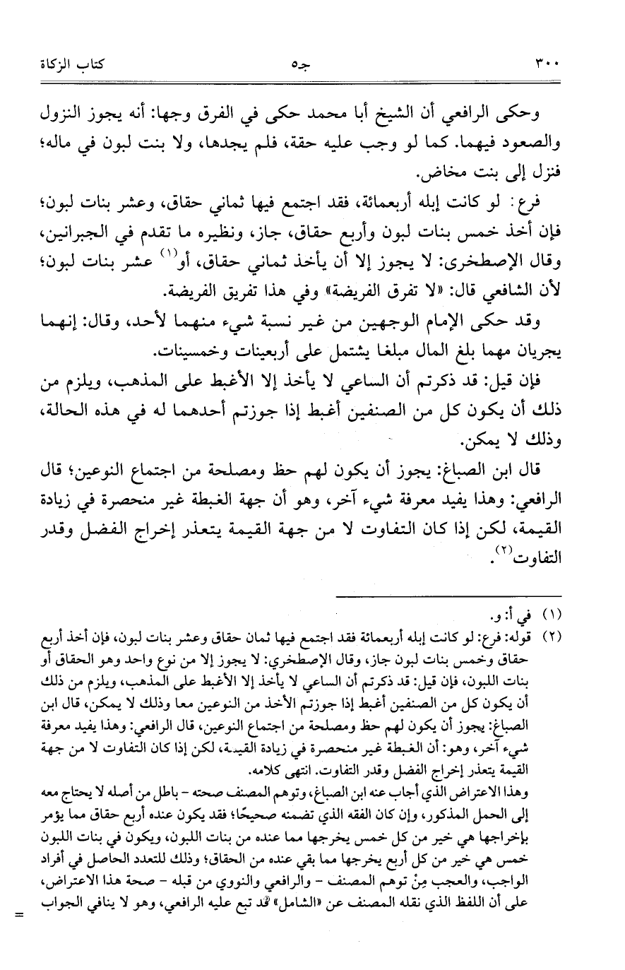 وحكى الرافعي أن الشيخ أبا محمد حكى في الفرق وجهاً: أنه يجوز النزول والصعود فيهما. كما لو وجب عليه حقة، فلم يجدها، ولا بنت لبون في ماله؛ فنزل إلى بنت مخاض.