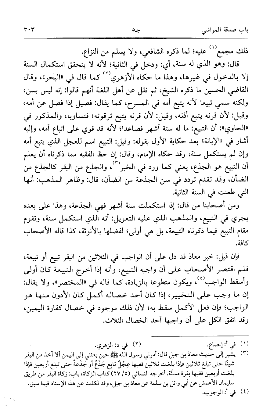 فإن قيل: خبر معاذ قد دل على أن الواجب في الثلاثين من البقر تبيع أو تبيعة، فلم اقتصر الأصحاب على أن واجبه التبيع، وأنه إذا أخرج التبيعة كان أولى وأسقط الواجب، ويكون متطوعاً بالزيادة، كما قاله في "المختصر"، ولا يقال: إن ما وجب على التخيير، إذا كان أحد خصاله أكمل كان الأدون منها هو الواجب؛ فإن فعل الأكمل سقط به؛ لأن ذلك موجود في خصال كفارة اليمين، وقد اتفق الكل على أن واجبها أحد الخصال الثلاث.