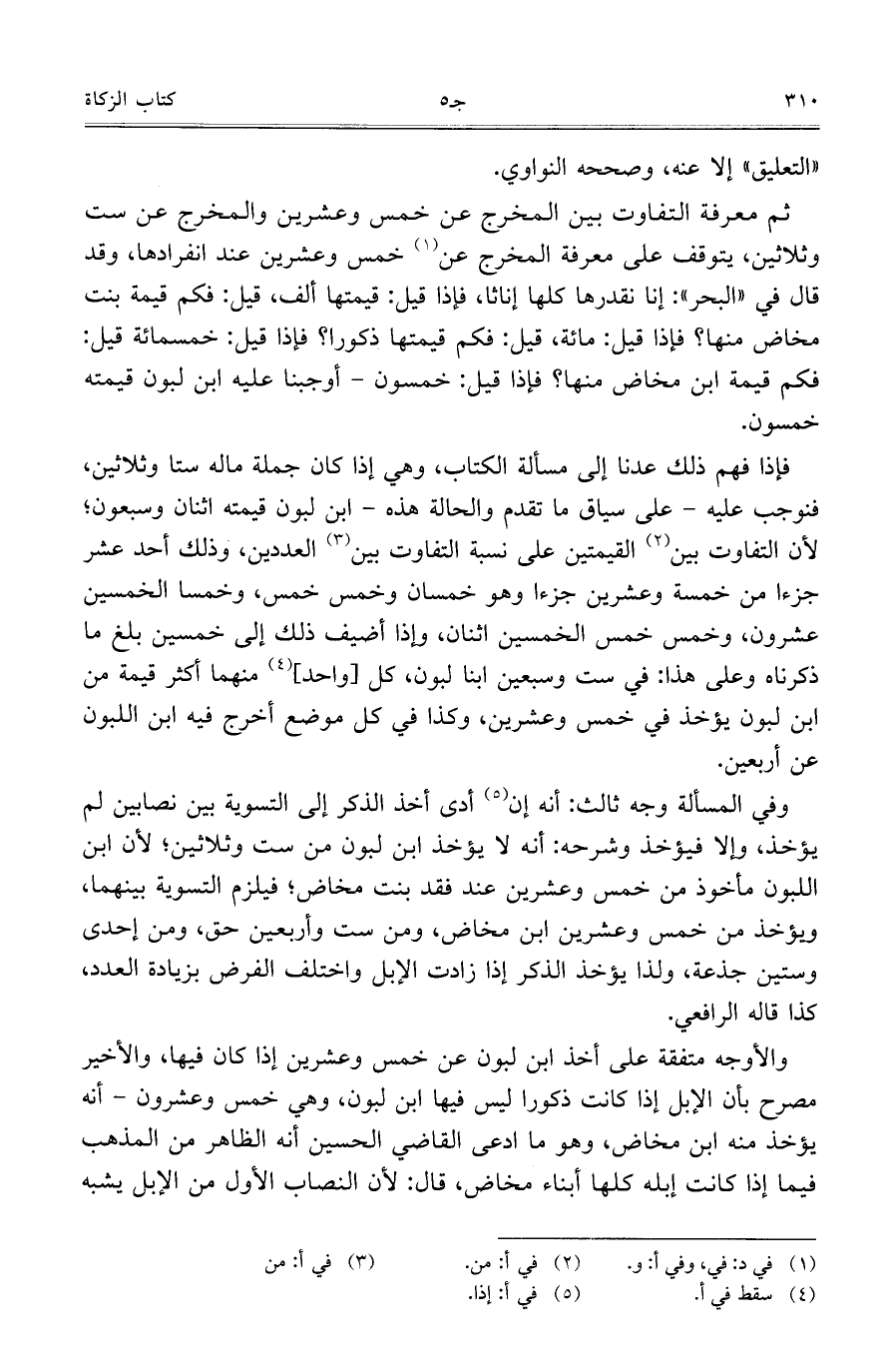 ثم معرفة التفاوت بين المخرج عن خمس وعشرين والمخرج عن ست وثلاثين، يتوقف على معرفة المخرج عن خمس وعشرين عند انفرادها، وقد قال في "البحر": إنا نقدرها كلها إناثاً، فإذا قيل: قيمتها ألف، قيل: فكم قيمة بنت مخاض منهأ؟ فإذا قيل: مائة: فكم قيمتها ذكوراً؟ فإذا قيل: خمسمائة قيل: فكم قيمة ابن مخاض منها؟ فإذا قيل: خمسون- أوجبنا عليه ابن لبون قيمتها خمسون.