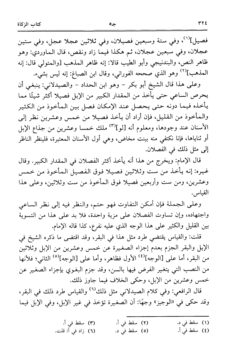 قال الإمام: ويخرج من هذا أنه يأخذ أكثر الفصلان في المقدار الكبير. وقال غيره: إنه يأخذ من ست وثلاثين فصيلاً فوق الفصيل المأخوذ من خمس وعشرين، ومن ست وأربعين فصيلاً فوق المأخوذ من ست وثلاثين، وعلى هذا القياس.