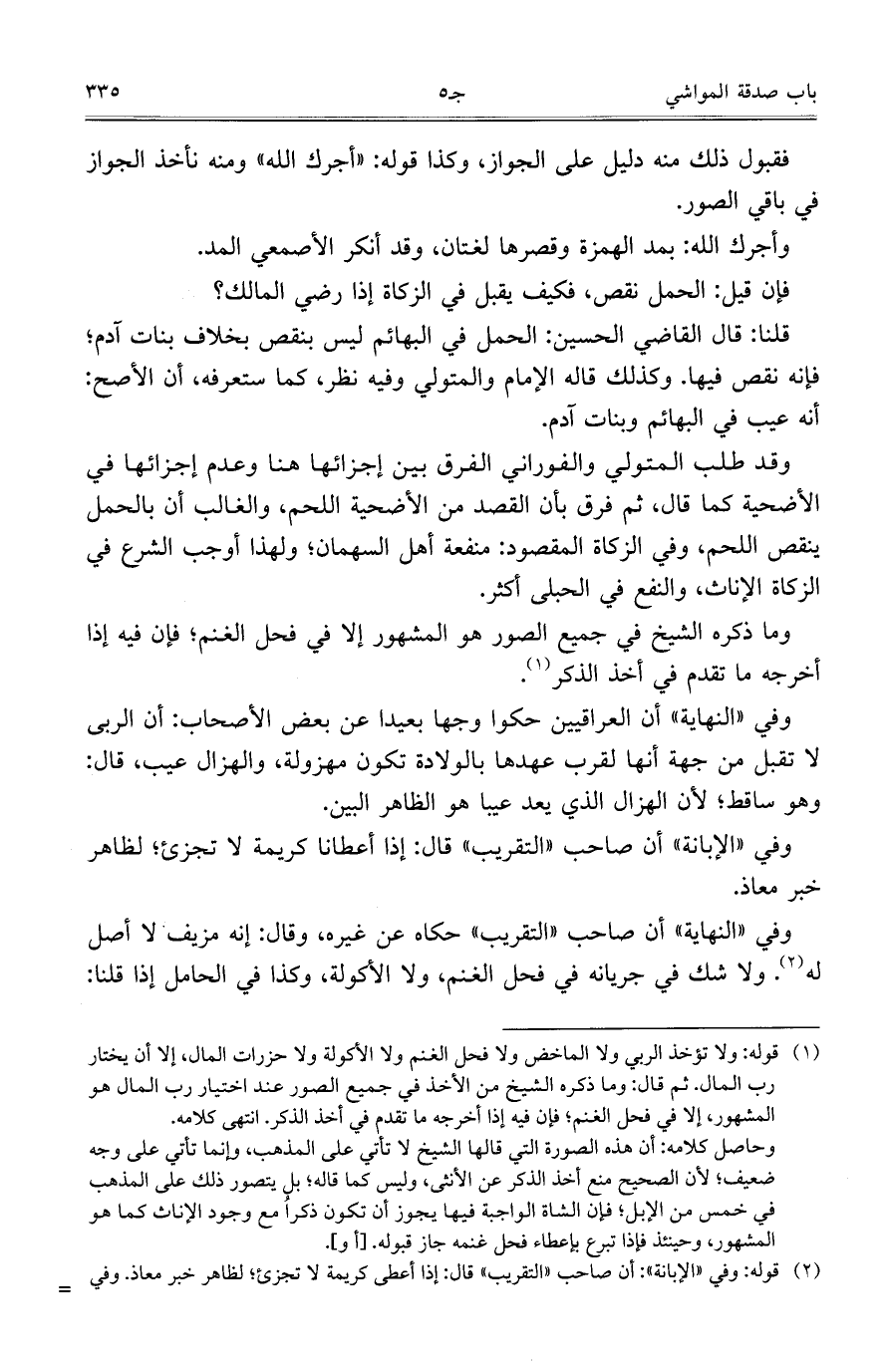 وقد طلب المتولي والفوراني الفرق بين إجزائها هنا وعدم إجزائها في الأضحية كما قال: ثم فرق بأن القصد من الأضحية اللحم، والغالب أن بالحمل ينقص اللحم، وفي الزكاة المقصود: منفعة أهل السهمان؛ ولهذا أوجب الشرع في الزكاة الإناث، والنفع في الحبلى أكثر.