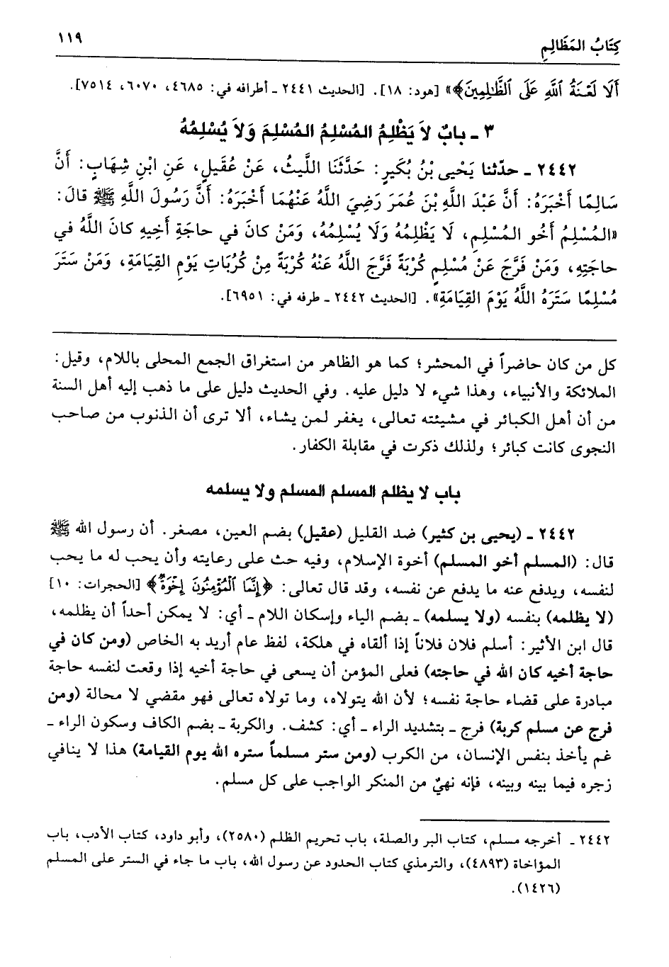 باب لا يظلم المسلم المسلم ولا يسلمه