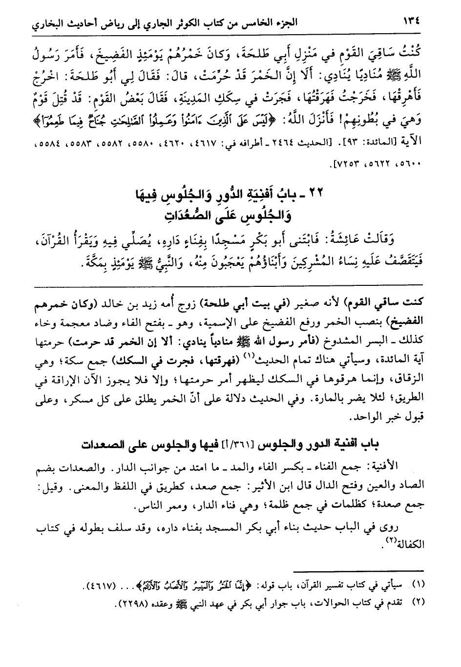 22 - باب أَفْنِيَةِ الدُّورِ وَالْجُلُوسِ فِيهَا وَالْجُلُوسِ عَلَى الصُّعُدَاتِ