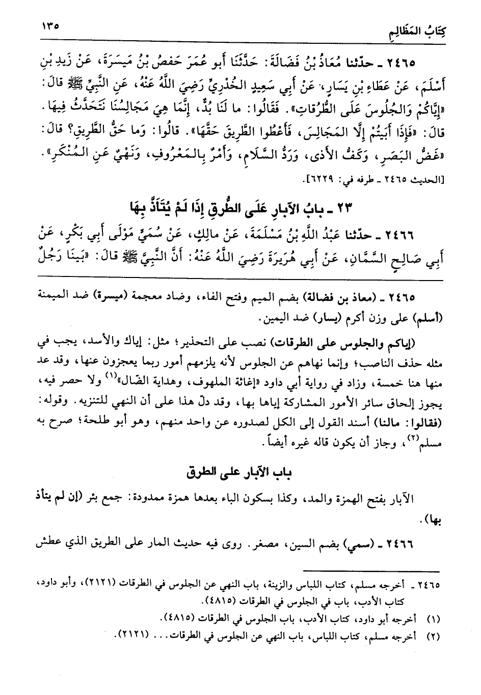 23 - باب الآبَارِ عَلَى الطُّرُقِ إِذَا لَمْ يُتَأَذَّ بِهَا
