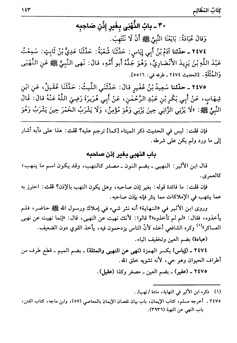 30 - باب النُّهْبَى بِغَيْرِ إِذْنِ صَاحِبِهِ