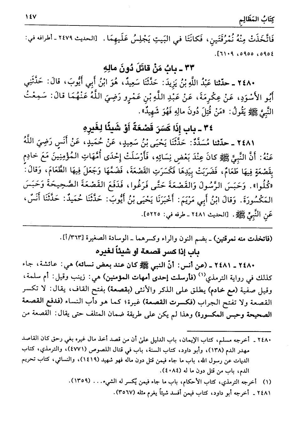 34 - باب إِذَا كَسَرَ قَصْعَةً أَوْ شَيْئًا لِغَيْرِهِ