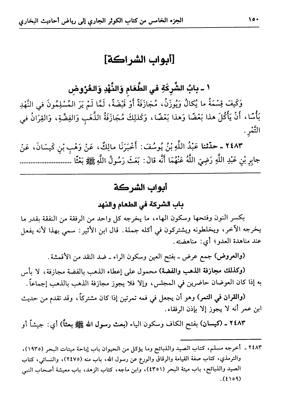 2483 - حَدَّثَنَا عَبْدُ اللَّهِ بْنُ يُوسُفَ أَخْبَرَنَا مَالِكٌ عَنْ وَهْبِ بْنِ كَيْسَانَ عَنْ جَابِرِ بْنِ عَبْدِ اللَّهِ - رضى الله عنهما - أَنَّهُ قَالَ بَعَثَ رَسُولُ اللَّهِ - صلى الله عليه وسلم - بَعْثًا