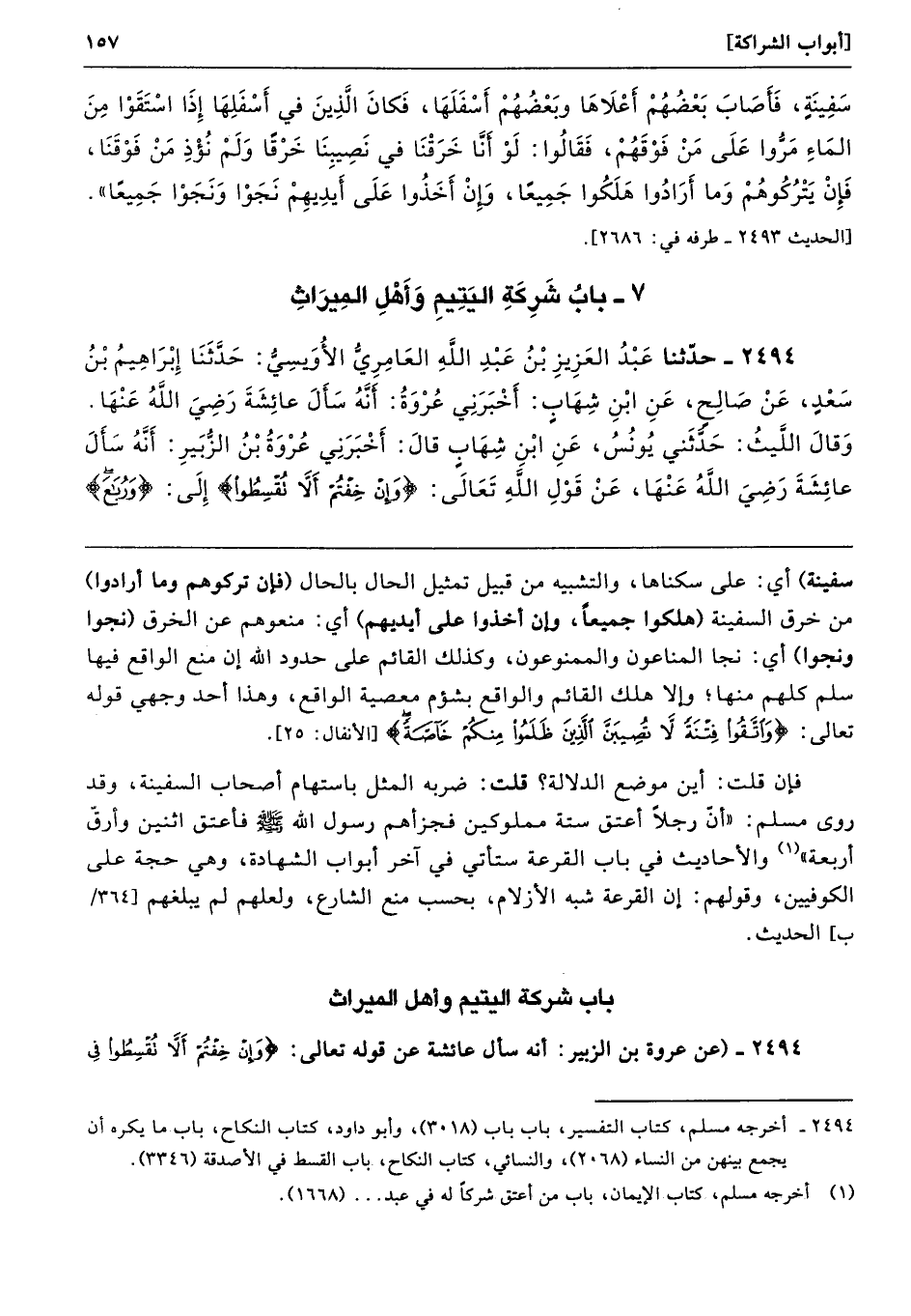 7 - باب شَرِكَةِ الْيَتِيمِ وَأَهْلِ الْمِيرَاثِ