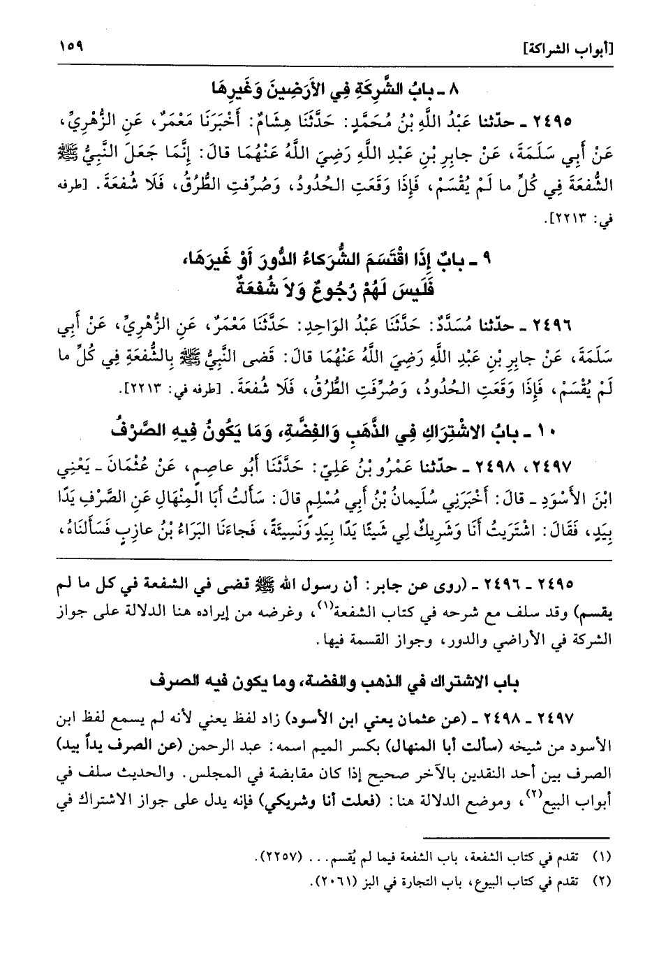 2495 - 2496 - (روى عن جابر: أن رسول الله - صلى الله عليه وسلم - قضى في الشفعة في كل ما لم يقسم) وقد سلف مع شرحه في كتاب الشفعة، وغرضه من إيراده هنا الدلالة على جواز الشركة في الأراضي والدور، وجواز القسمة فيها.