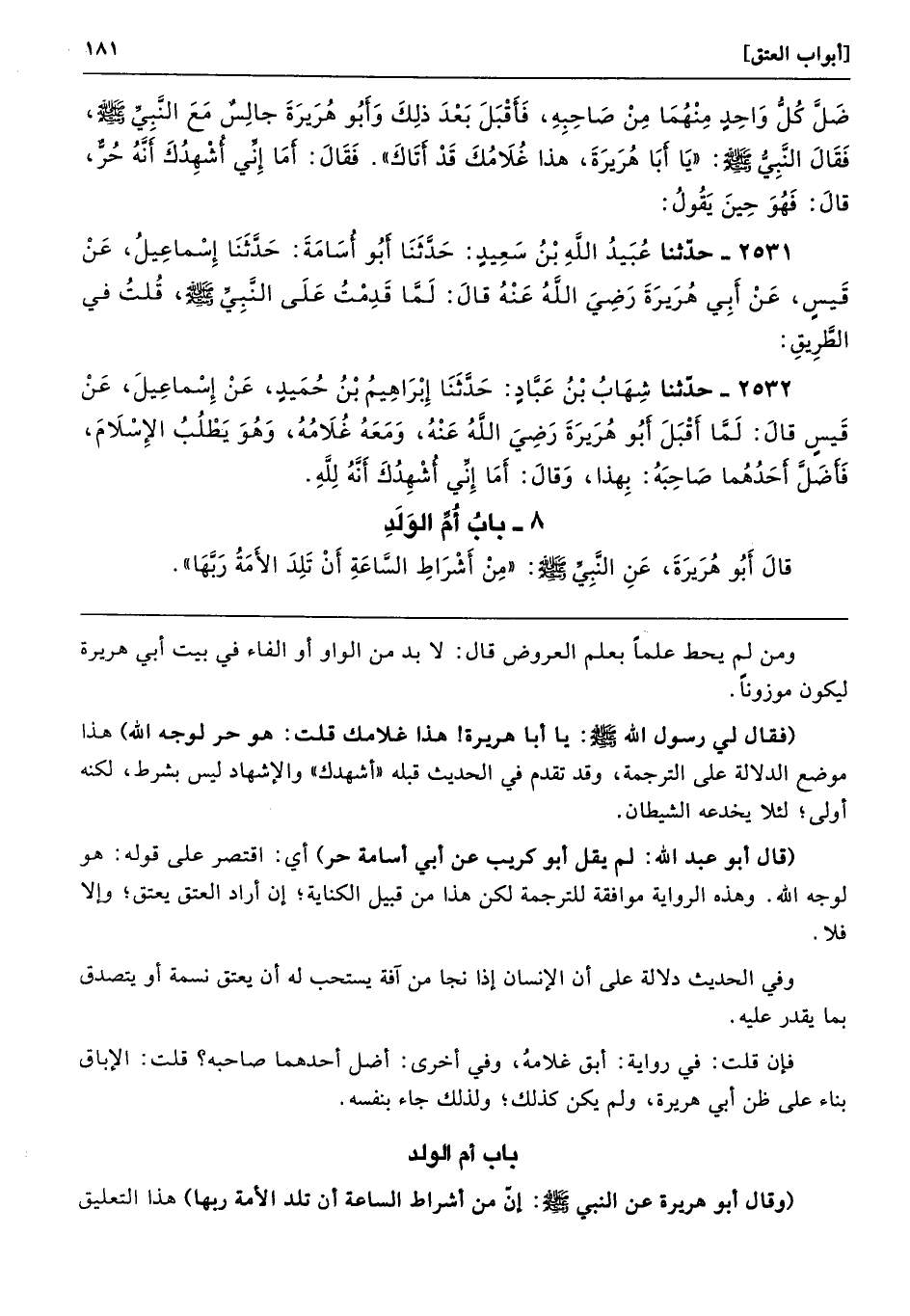 قَالَ أَبُو هُرَيْرَةَ عَنِ النَّبِيِّ - صلى الله عليه وسلم - «مِنْ أَشْرَاطِ السَّاعَةِ أَنْ تَلِدَ الأَمَةُ رَبَّهَا».