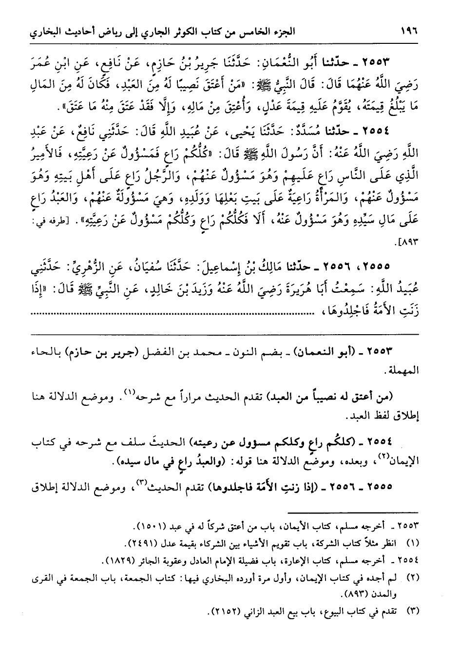 2553 - (أبو النعمان) -بضم النون- محمد بن الفضل (جرير بن حازم) بالحاء المهملة.