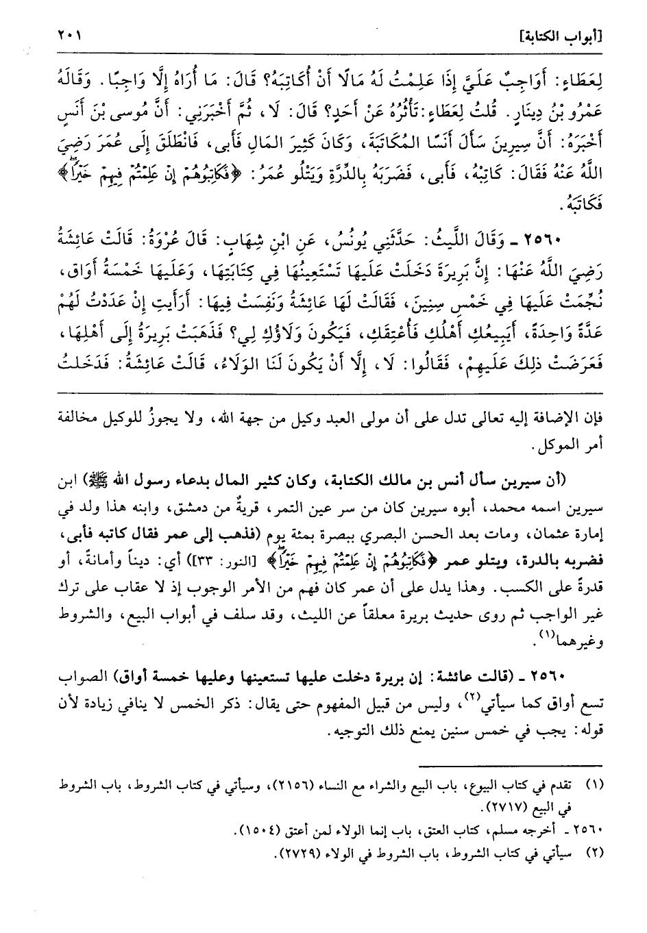 2560 - (قالت عائشة: إن بريرة دخلت عليها تستعينها وعليها خمسة أواق) الصواب تسع أواق كما سيأتي، وليس من قبيل المفهوم حتى يقال: ذكر الخمس لا ينافي زيادة لأن قوله: يجب في خمس سنين يمنع ذلك التوجيه.