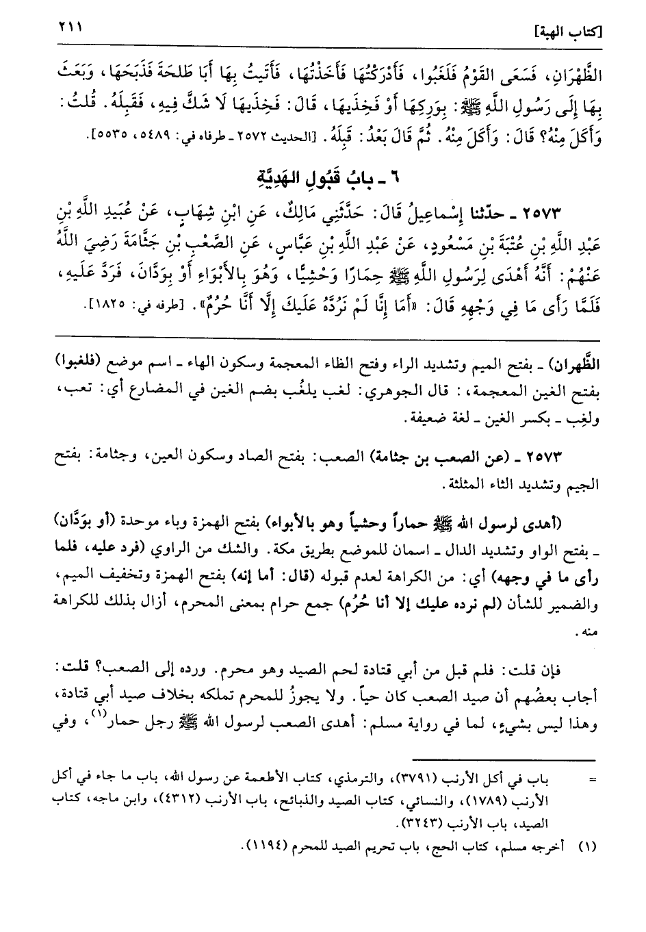 2573 - (عن الصعب بن جثامة) الصعب: بفتح الصاد وسكون العين، وجثامة: بفتح الجيم وتشديد الثاء المثلثة.