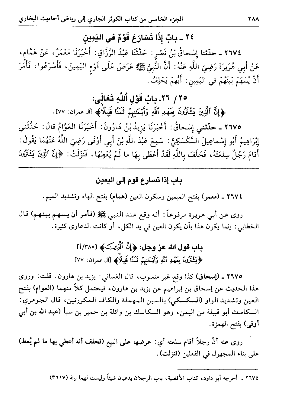 باب قول الله عز وجل: {إِنَّ الَّذِينَ يَشْتَرُونَ بِعَهْدِ اللَّهِ وَأَيْمَانِهِمْ ثَمَنًا قَلِيلًا} [آل عمران: 77]