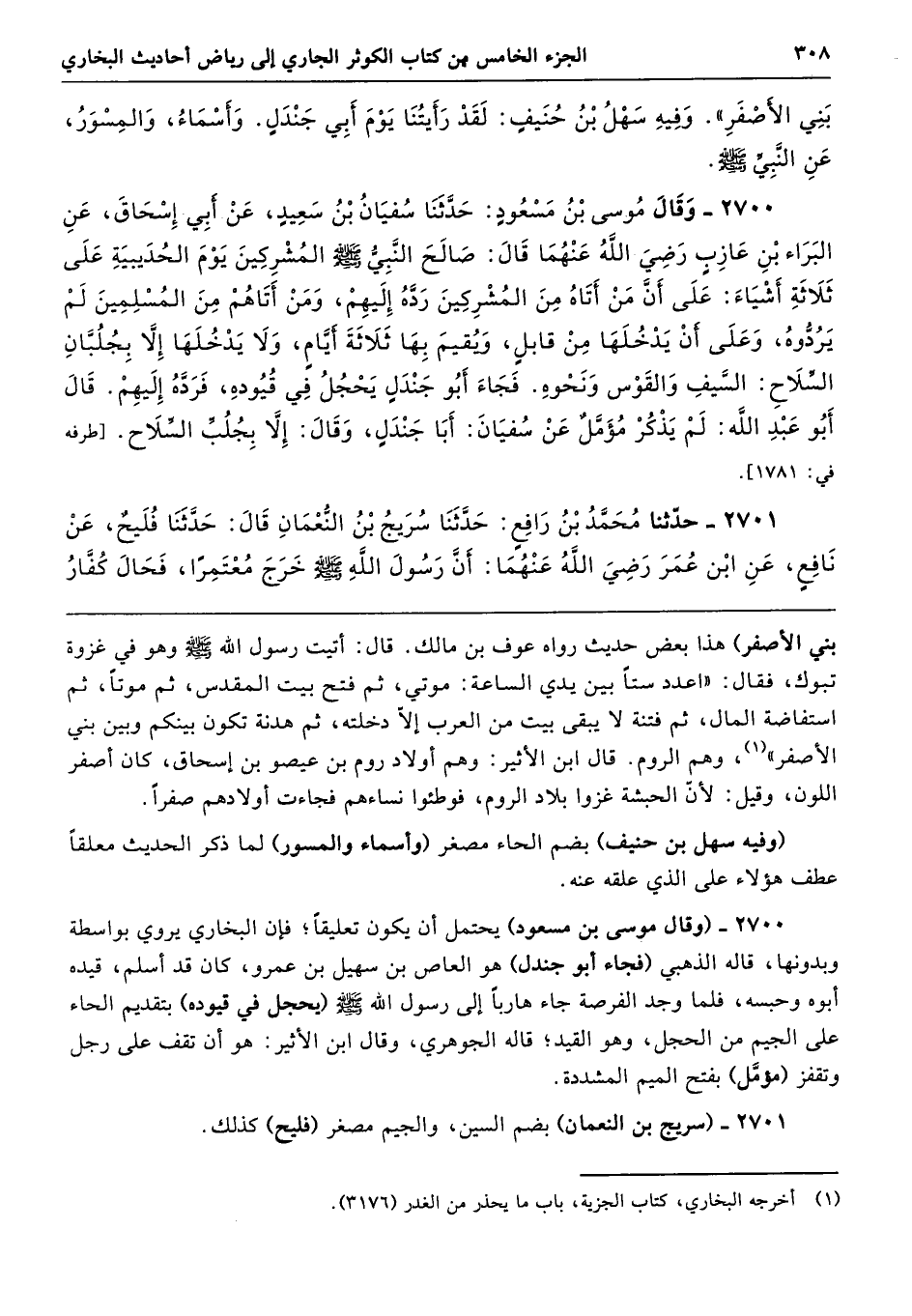 2700 - (وقال موسى بن مسعود) يحتمل أن يكون تعليقًا؛ فإن البخاري يروي بواسطة وبدونها، قاله الذهبي (فجاء أبو جندل) هو العاص بن سهيل بن عمرو، كان قد أسلم، قيده أبوه وحبسه، فلما وجد الفرصة جاء هاربًا إلى رسول الله - صلى الله عليه وسلم - (يحجل في قيوده) بتقديم الحاء على الجيم من الحجل، وهو القيد؛ قاله الجوهري، وقال ابن الأثير: هو أن تقف على رجل وتقفز (مؤمَّل) بفتح الميم المشددة.