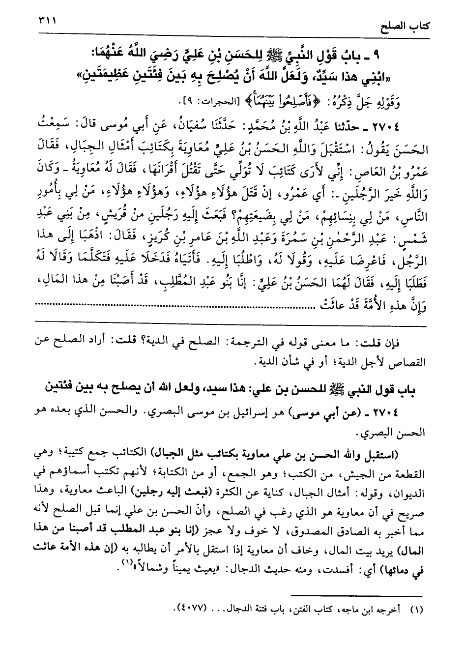 باب قول النبي - صلى الله عليه وسلم - للحسن بن علي: هذا سيد، ولعل الله أن يصلح به بين فئتين