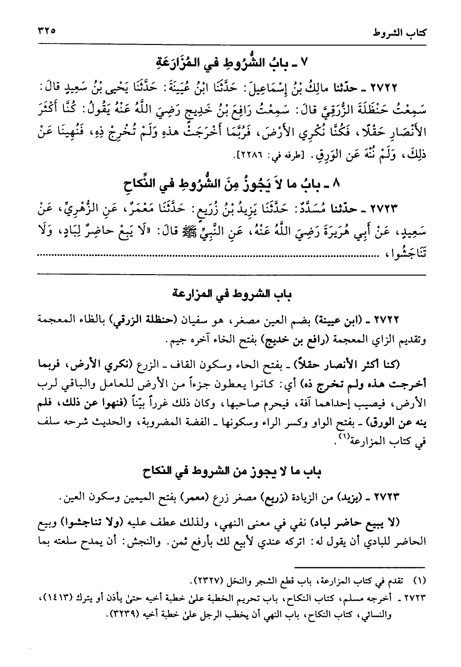 2722 - (ابن عيينة) بضم العين مصغر، هو سفيان (حنظلة الزرقي) بالظاء المعجمة وتقديم الزاي المعجمة (رافع بن خديج) بفتح الخاء آخره جيم.