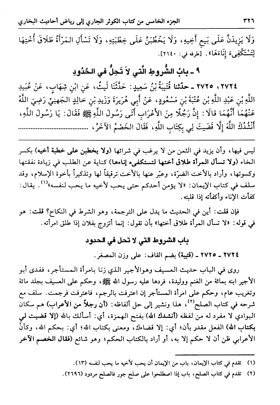 9 - باب الشُّرُوطِ الَّتِى لاَ تَحِلُّ فِي الْحُدُودِ
