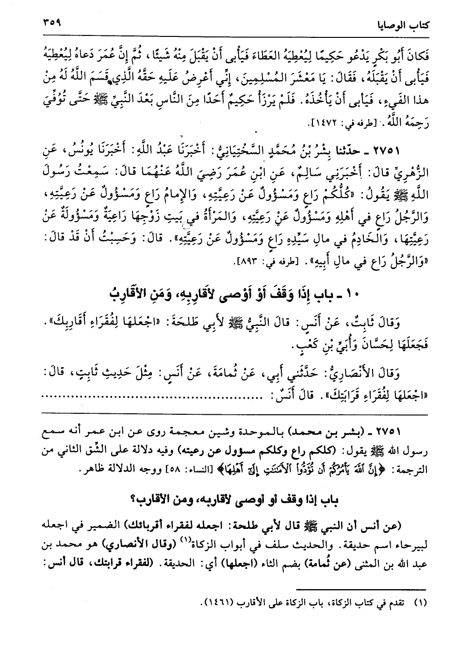 2751 - (بشر بن محمد) بالموحدة وشين معجمة روى عن ابن عمر أنه سمع رسول الله - صلى الله عليه وسلم - يقول: (كلكم راع وكلكم مسؤول عن رعيته) وفيه دلالة على الشِّق الثاني من الترجمة: {إِنَّ اللَّهَ يَأْمُرُكُمْ أَنْ تُؤَدُّوا الْأَمَانَاتِ إِلَى أَهْلِهَا} [النساء: 58] ووجه الدلالة ظاهر.