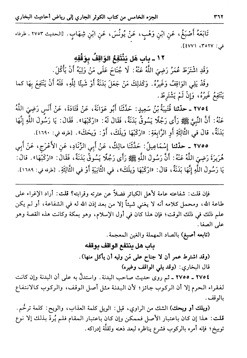 2754 - 2755 - ثم روى حديث صاحب البدنة. واستدلَّ به على أن البدنة وإن كانت لفقراء الحرم إلا أن الركوب جائز؛ لأن البدنة مثل أصل الوقف، والركوب كالانتفاع بالوقف.
