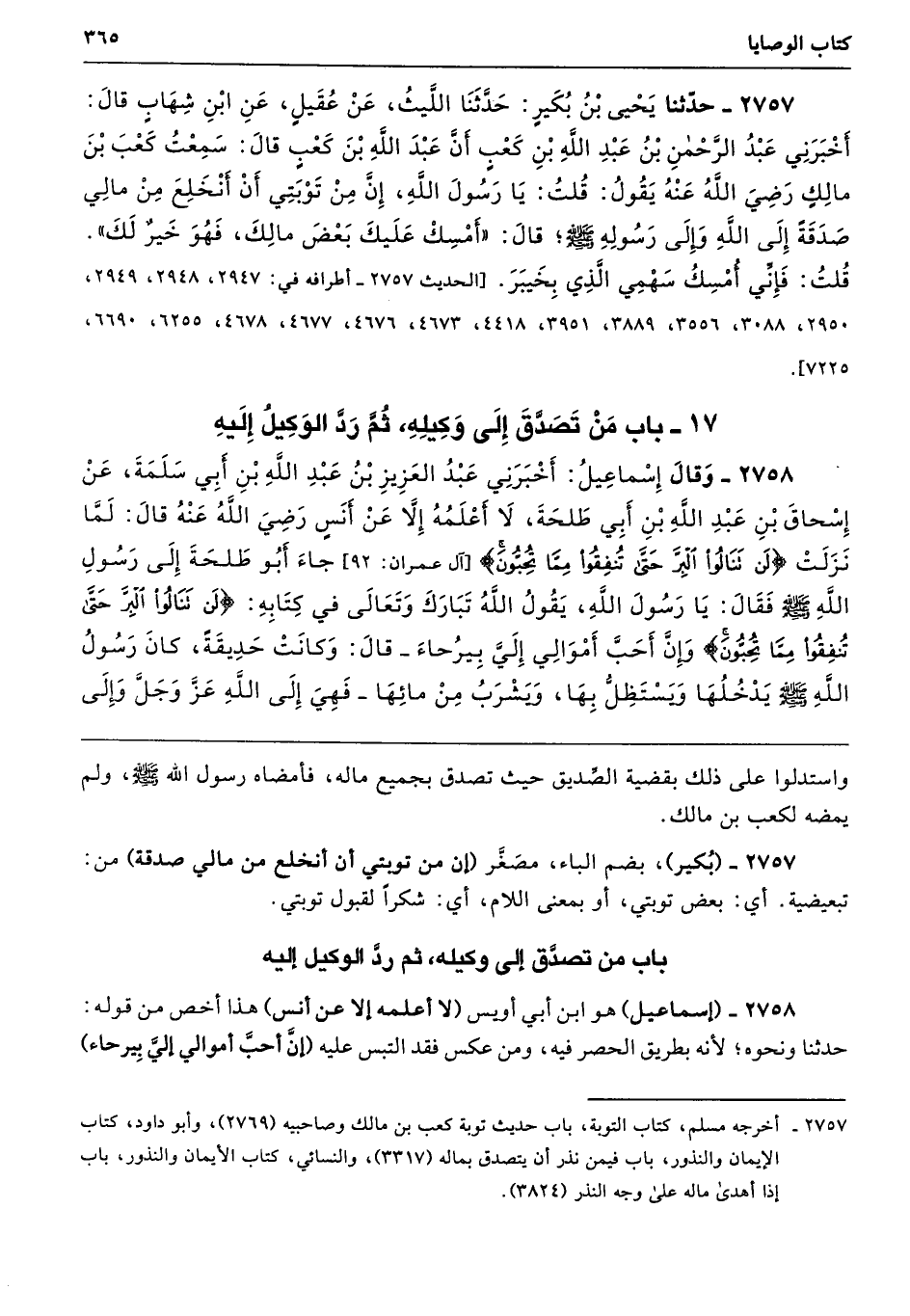 2757 - (بُكير)، بضم الباء، مصَغَّر (إن من توبتي أن أنخلع من مالي صدقة) من: تبعيضية. أي: بعض توبتي، أو بمعنى اللام، أي: شكرًا لقبول توبتي.