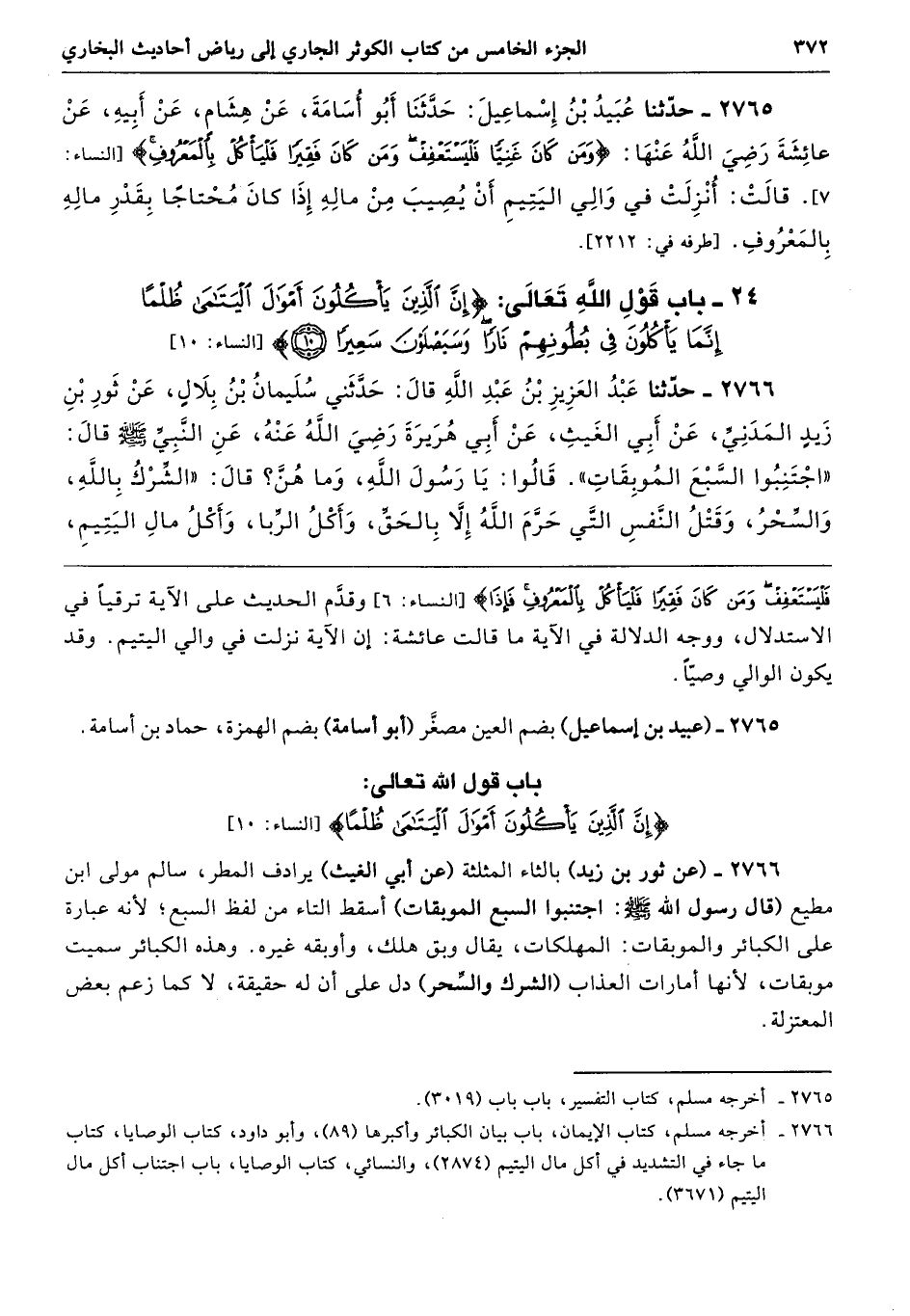 24 - باب قَوْلِ اللَّهِ تَعَالَى (إِنَّ الَّذِينَ يَأْكُلُونَ أَمْوَالَ الْيَتَامَى ظُلْمًا إِنَّمَا يَأْكُلُونَ فِي بُطُونِهِمْ نَارًا وَسَيَصْلَوْنَ سَعِيرًا)