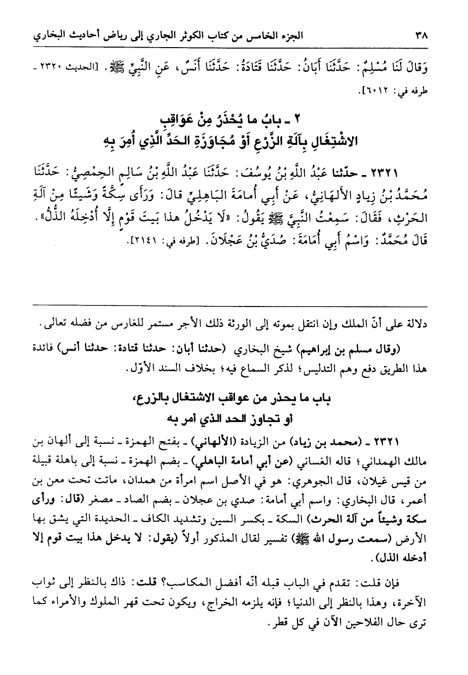 2 - باب مَا يُحْذَرُ مِنْ عَوَاقِبِ الاِشْتِغَالِ بِآلَةِ الزَّرْعِ أَوْ مُجَاوَزَةِ الْحَدِّ الَّذِى أُمِرَ بِهِ