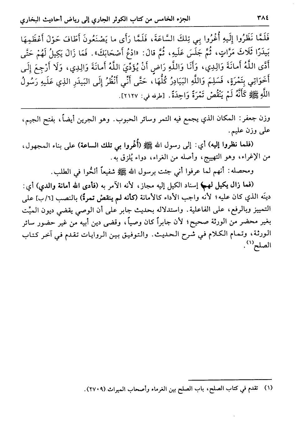 كتاب الكوثر الجاري إلى رياض أحاديث البخاري (اسم الجزء: 5)