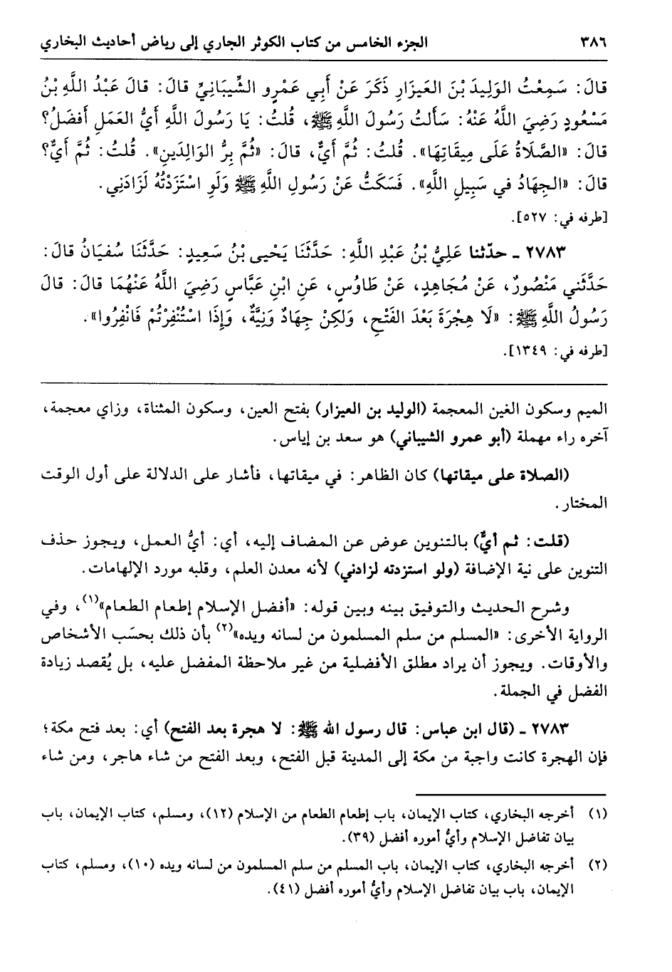 كتاب الكوثر الجاري إلى رياض أحاديث البخاري (اسم الجزء: 5)