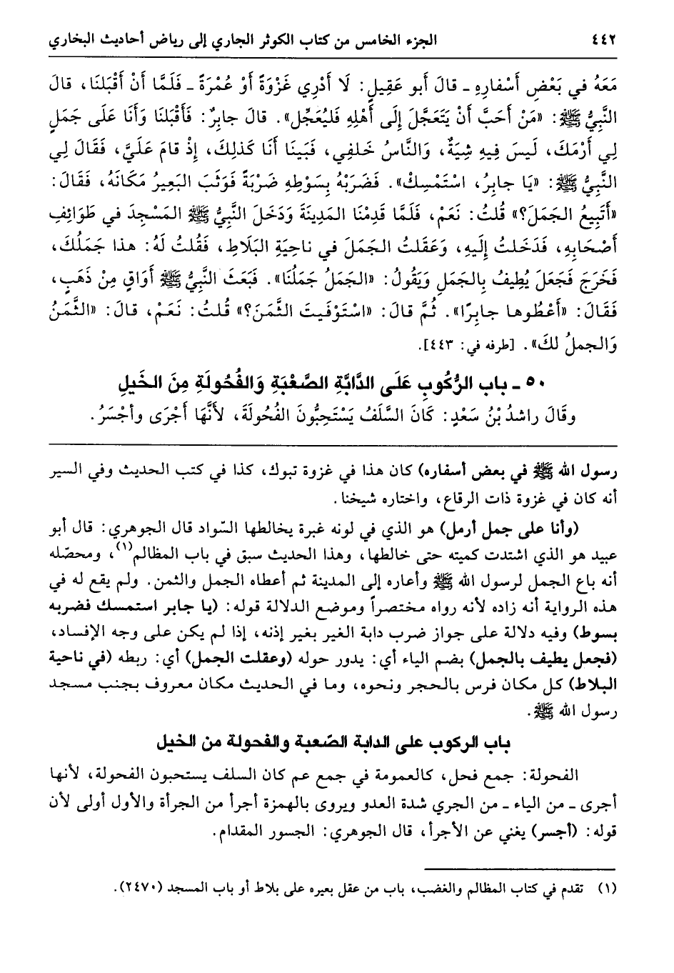كتاب الكوثر الجاري إلى رياض أحاديث البخاري (اسم الجزء: 5)