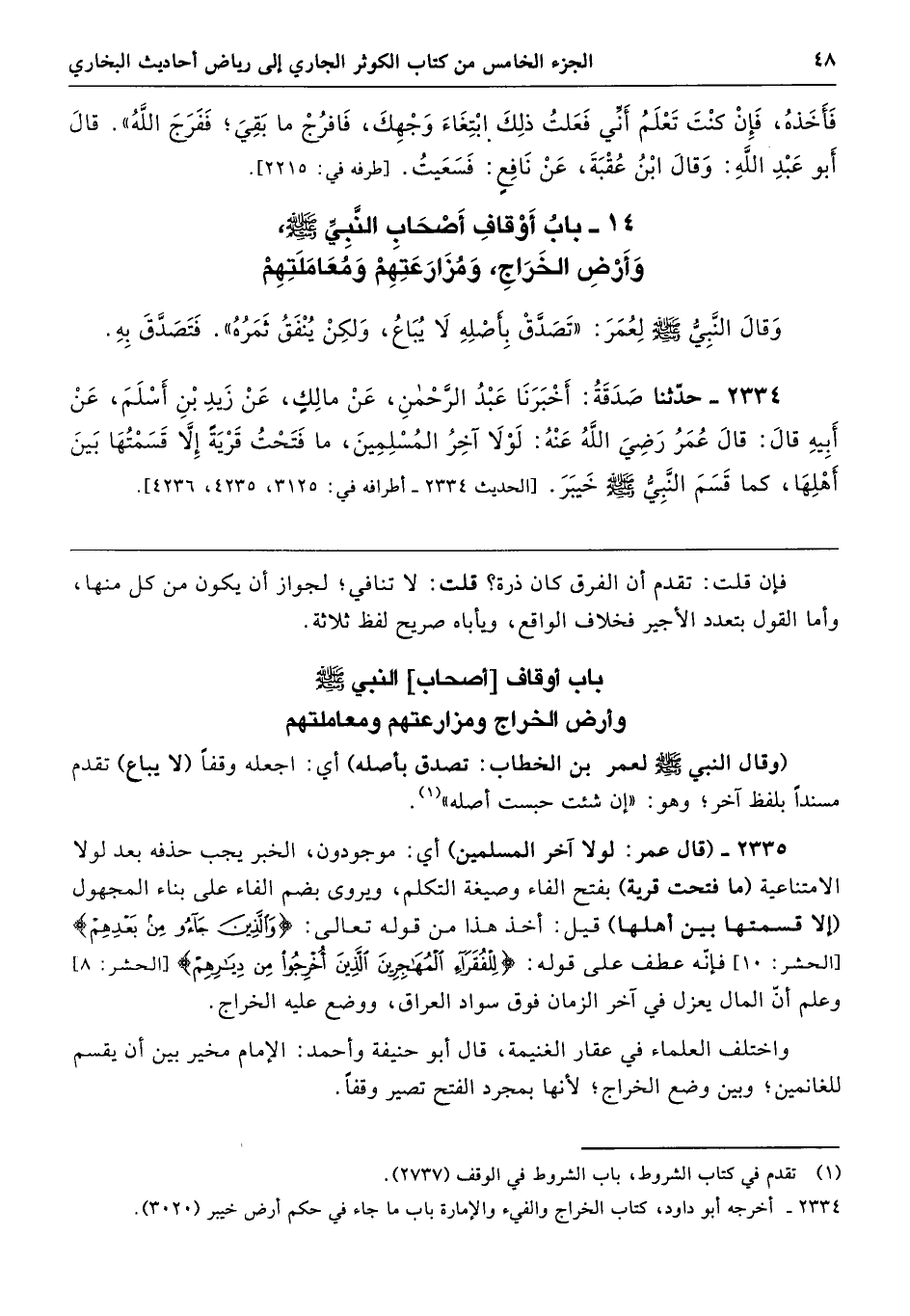 باب أوقاف [أصحاب] النَّبِيّ -صلى الله عليه وسلم- وأرض الخراج ومزارعتهم ومعاملتهم