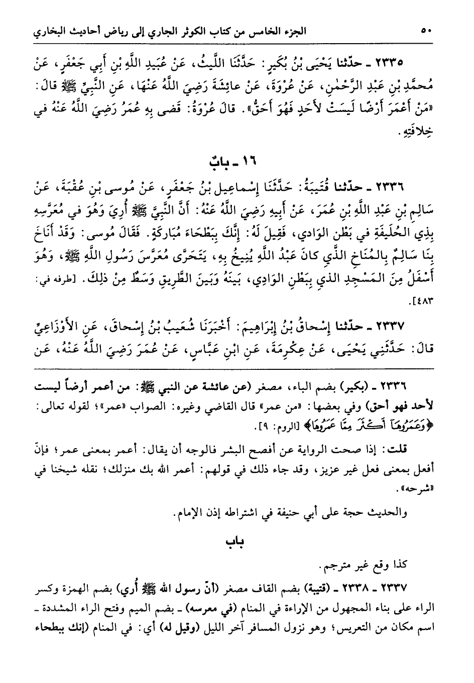 كتاب الكوثر الجاري إلى رياض أحاديث البخاري (اسم الجزء: 5)