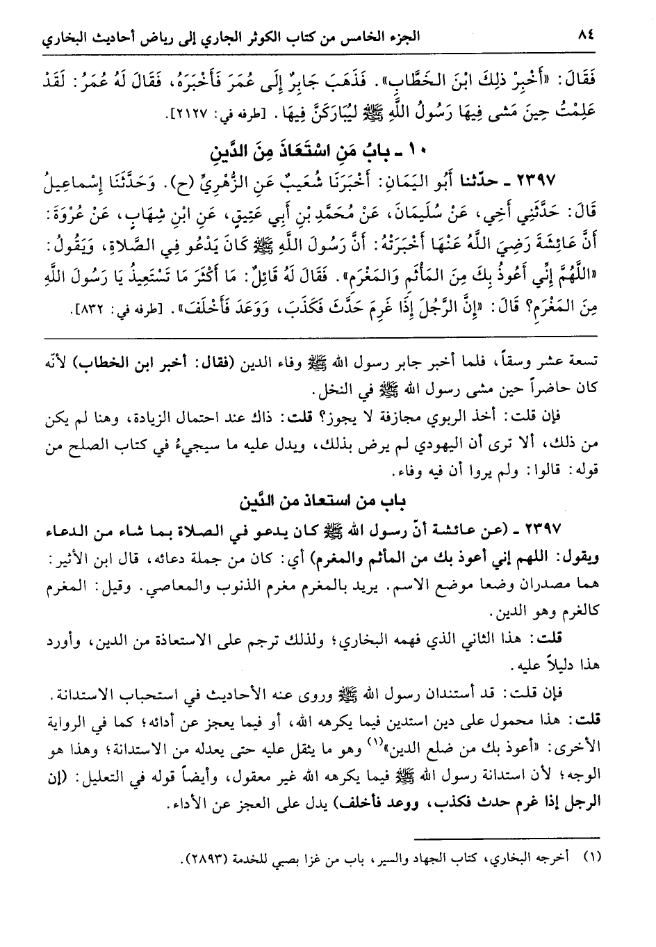 كتاب الكوثر الجاري إلى رياض أحاديث البخاري (اسم الجزء: 5)