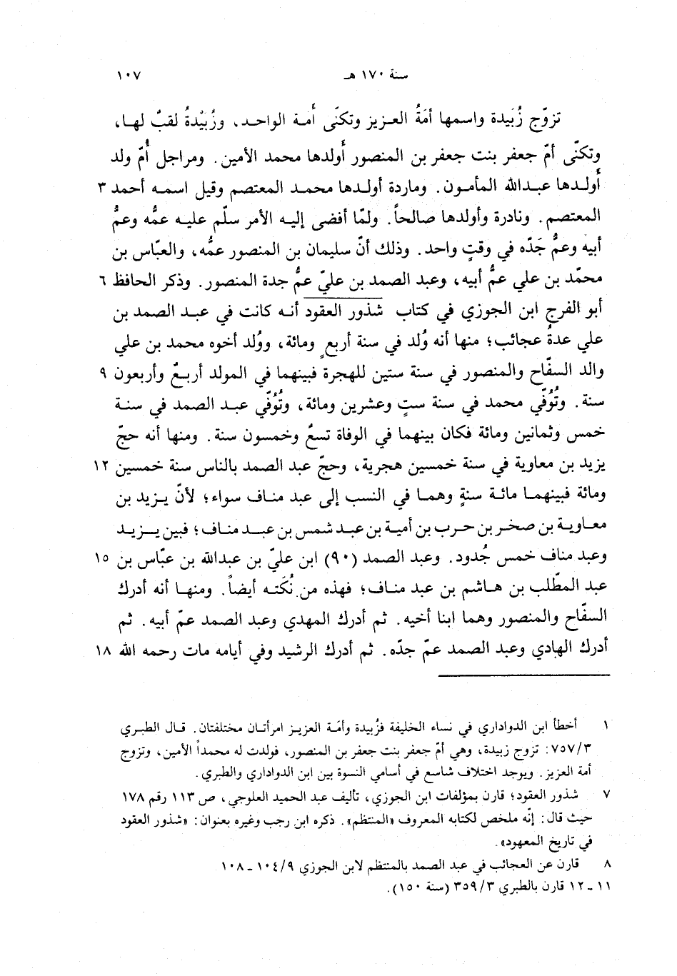 تزوّج زبيدة واسمها أمة العزيز وتكنّى أمة الواحد، وزبيدة لقب لها، وتكنّى أمّ جعفر بنت جعفر بن المنصور أولدها محمد الأمين. ومراجل أمّ ولد أولدها عبد الله المأمون. وماردة أولدها محمد المعتصم وقيل اسمه أحمد المعتصم. ونادرة وأولدها صالحا. ولمّا أفضى إليه الأمر سلّم عليه عمّه وعمّ أبيه وعمّ جدّه في وقت واحد. وذلك أنّ سليمان بن المنصور عمّه، والعبّاس بن محمّد بن علي عمّ أبيه، وعبد الصمد بن عليّ عمّ جدة المنصور. وذكر الحافظ أبو الفرج ابن الجوزي في كتاب شذور العقود أنه كانت في عبد الصمد بن علي عدة عجائب؛ منها أنه ولد في سنة أربع ومائة، وولد أخوه محمد بن علي والد السفّاح والمنصور في سنة ستين للهجرة فبينهما في المولد أربع وأربعون سنة. وتوفّي محمد في سنة ست وعشرين ومائة، وتوفّي عبد الصمد في سنة خمس وثمانين ومائة فكان بينهما في الوفاة تسع وخمسون سنة. ومنها أنه حجّ يزيد بن معاوية في سنة خمسين هجرية، وحجّ عبد الصمد بالناس سنة خمسين ومائة فبينهما مائة سنة وهما في النسب إلى عبد مناف سواء؛ لأنّ يزيد بن معاوية بن صخر بن حرب بن أمية بن عبد شمس بن عبد مناف؛ فبين يزيد وعبد مناف خمس جدود. وعبد الصمد (90) ابن عليّ بن عبد الله بن عبّاس بن عبد المطّلب بن هاشم بن عبد مناف؛ فهذه من نكته أيضا. ومنها أنه أدرك السفّاح والمنصور وهما ابنا أخيه. ثم أدرك المهدي وعبد الصمد عمّ أبيه. ثم أدرك الهادي وعبد الصمد عمّ جدّه. ثم أدرك الرشيد وفي أيامه مات رحمه الله