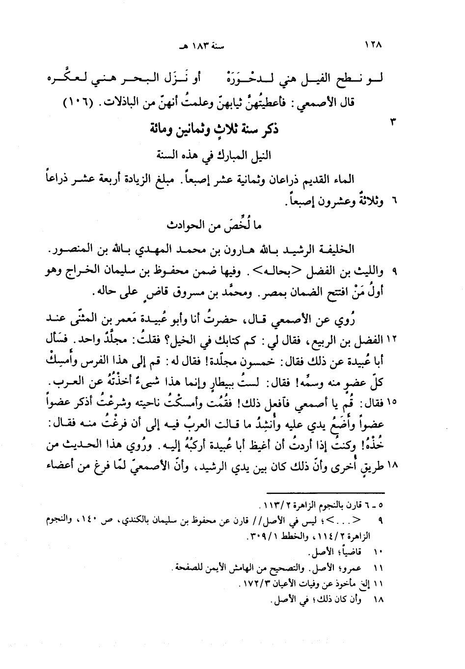 والليث بن الفضل <بحاله>.وفيها ضمن محفوظ بن سليمان الخراج وهو أول من افتتح الضمان بمصر. ومحمّد بن مسروق قاض على حاله.