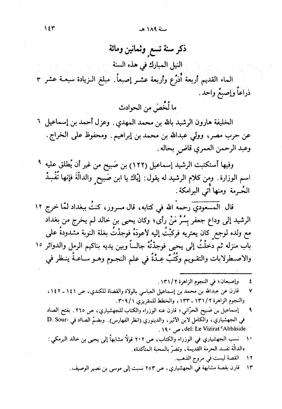 وفيها استكتبت الرشيد إسماعيل (122) بن صبيح من غير أن يطلق عليه اسم الوزارة. ومن كلام الرشيد له يقول: إيّاك يا ابن صبيح والدالّة فإنها تفسد الحرمة ومنها أتي البرامكة.