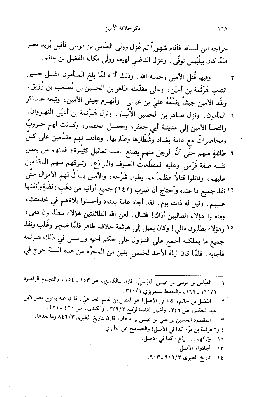 وفيها قتل الأمين رحمه الله. وذلك أنه لمّا بلغ المأمون مقتل حسين انتدب هرثمة بن أعين، وعلى مقدّمته طاهر بن الحسين بن مصعب بن رزيق.