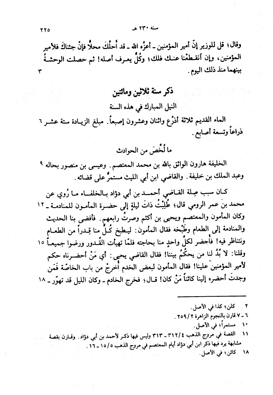 الخليفة هارون الواثق بالله بن محمد المعتصم. وعيسى بن منصور بحاله وعبد الملك بن خليفة. والقاضي ابن أبي الليث مستمرّ على قضائه.