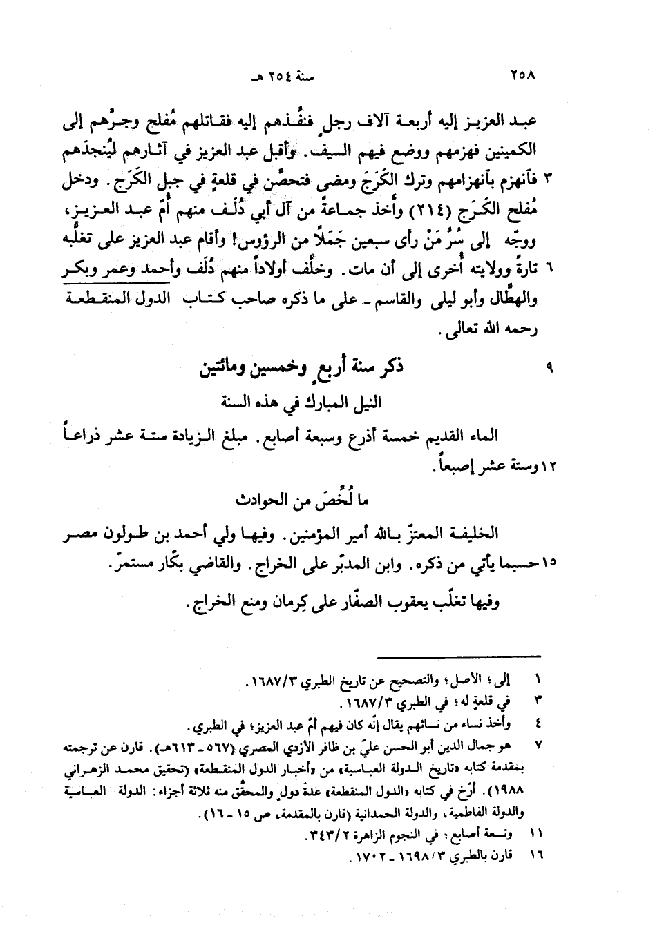 عبد العزيز إليه أربعة آلاف رجل فنفّذهم إليه فقاتلهم مفلح وجرّهم إلى الكمينين فهزمهم ووضع فيهم السيف. وأقبل عبد العزيز في آثارهم لينجدهم فانهزم بانهزامهم وترك الكرج ومضى فتحصّن في قلعة في جبل الكرج. ودخل مفلح الكرج (214) وأخذ جماعة من آل أبي دلف منهم أمّ عبد العزيز، ووجّه إلى سرّ من رأى سبعين جملا من الرؤوس! وأقام عبد العزيز على تغلّبه تارة وولايته أخرى إلى أن مات. وخلّف أولادا منهم دلف وأحمد وعمر وبكر والهطّال وأبو ليلى والقاسم-على ما ذكره صاحب كتاب الدول المنقطعة رحمه الله تعالى.