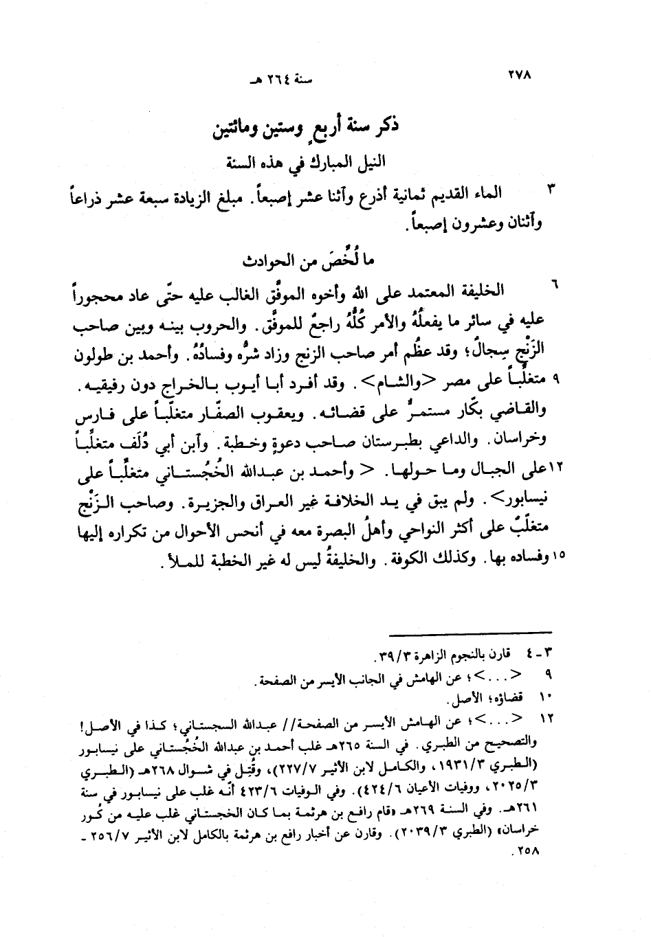 الخليفة المعتمد على الله وأخوه الموفّق الغالب عليه حتّى عاد محجورا عليه في سائر ما يفعله والأمر كلّه راجع للموفّق. والحروب بينه وبين صاحب الزنج سجال؛ وقد عظم أمر صاحب الزنج وزاد شرّه وفساده. وأحمد بن طولون متغلّبا على مصر <والشام>.وقد أفرد أبا أيوب بالخراج دون رفيقيه.