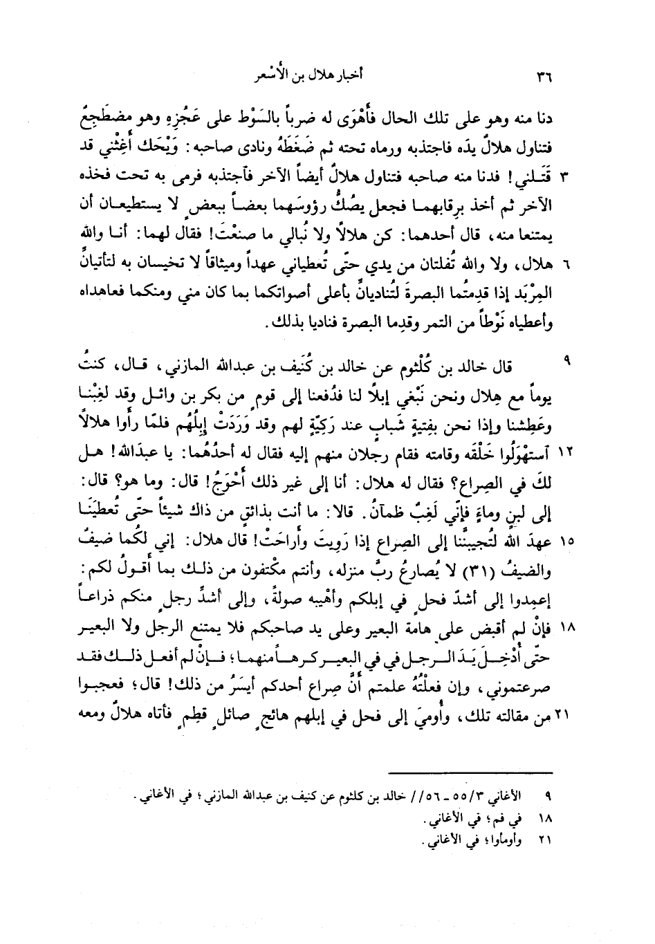 إلى لبن وماء فإنّي لغب ظمآن. قالا: ما أنت بذائق من ذاك شيئا حتّى تعطينا عهد الله لتجيبنّنا إلى الصراع إذا رويت وأراحت! قال هلال: إني لكما ضيف والضيف (31) لا يصارع ربّ منزله، وأنتم مكتفون من ذلك بما أقول لكم: