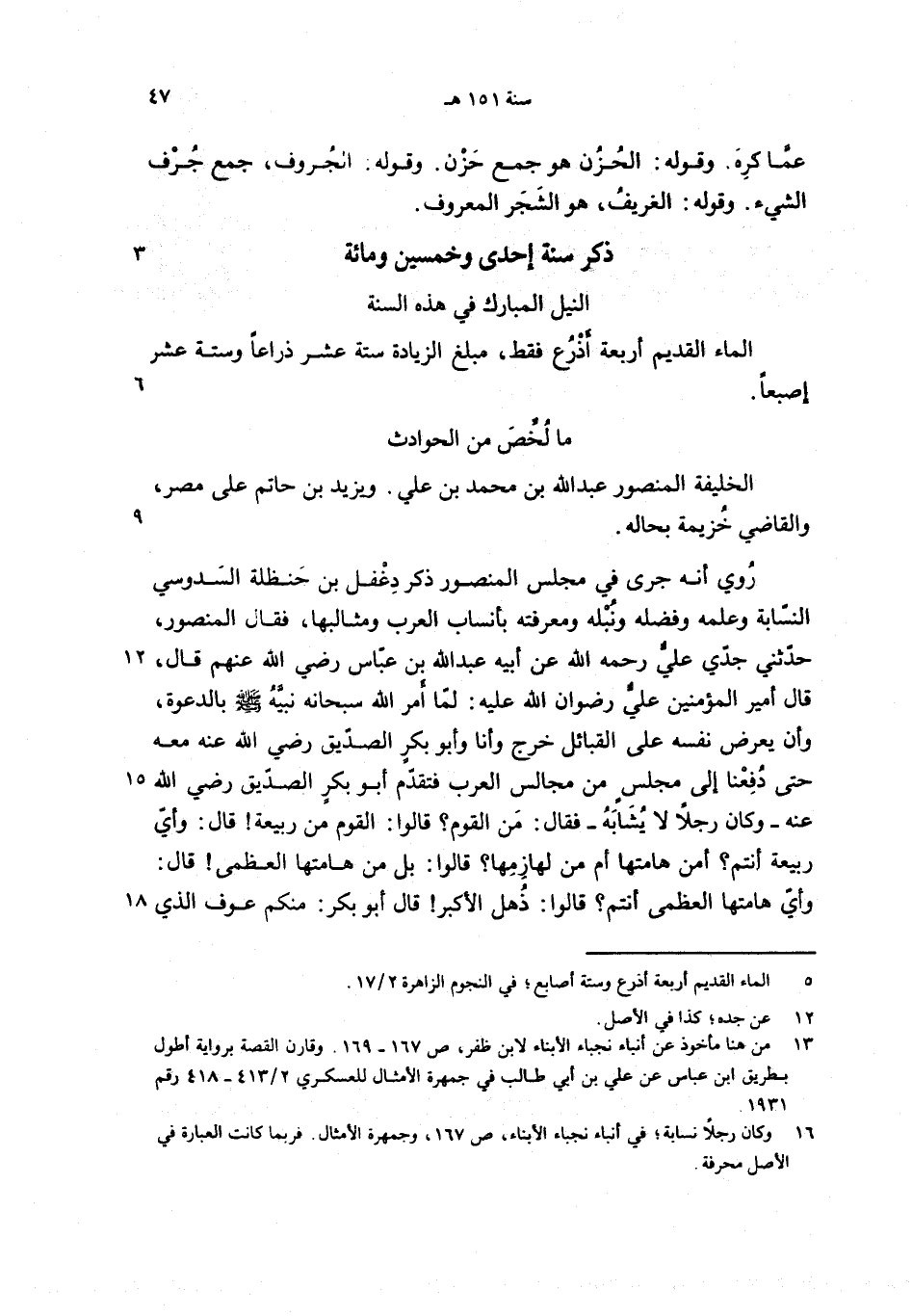 الماء القديم أربعة أذرع فقط، مبلغ الزيادة ستة عشر ذراعا وستة عشر إصبعا.